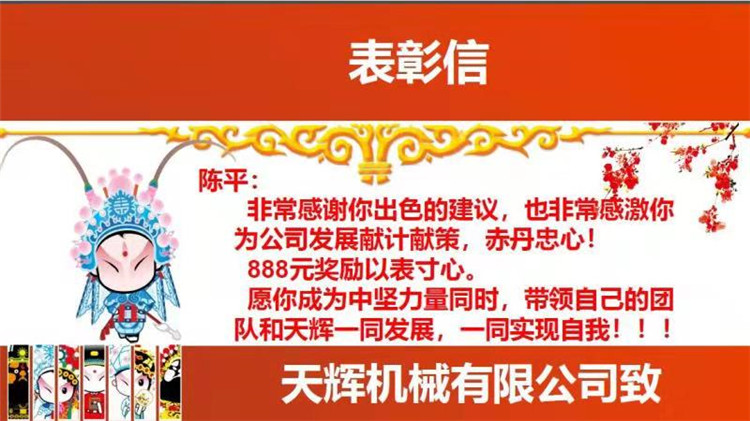 獎(jiǎng)勵(lì)天輝機(jī)械的“主人翁”