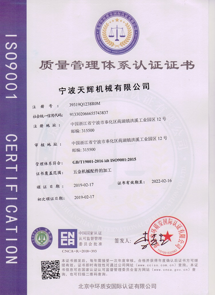 天輝是寧波的一家精密加工工廠,根據客戶圖紙或樣品生產OEM定制金屬產品。公司通過了ISO9001:2015認證,質量保證,交期穩(wěn)定。